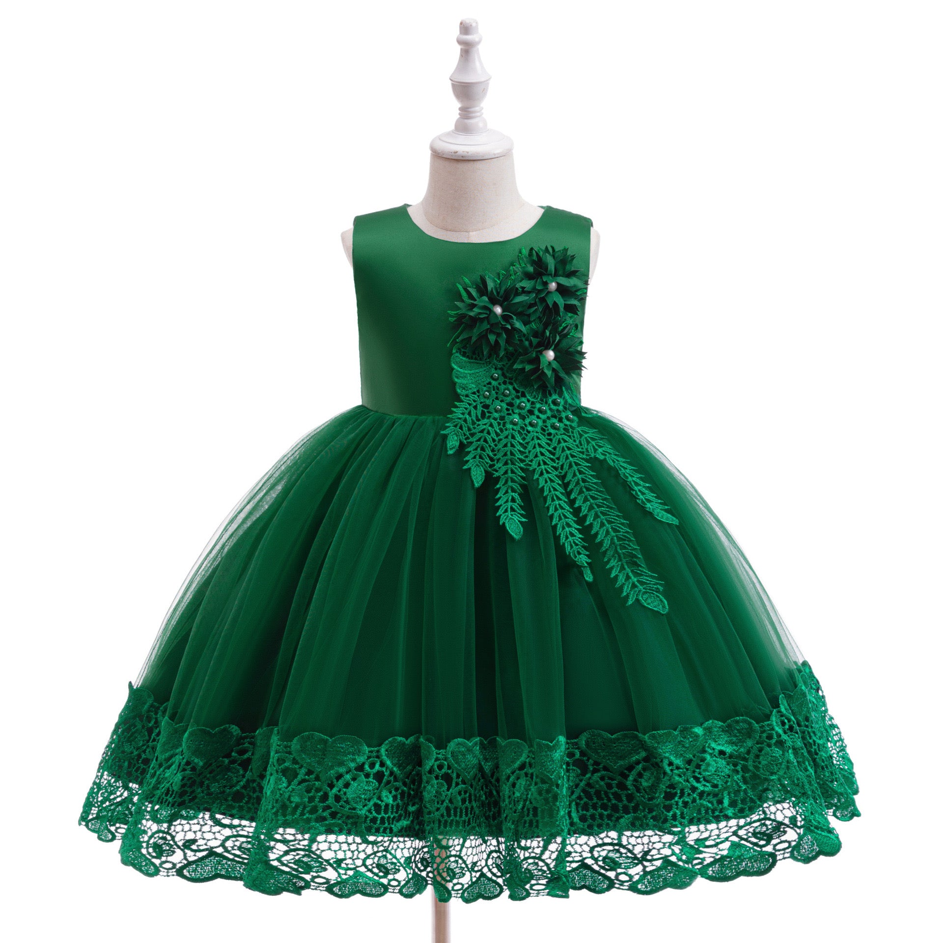Robe tutu en maille sans manches de couleur unie avec décoration florale 3D, élégante et pour fête, sans serre-tête